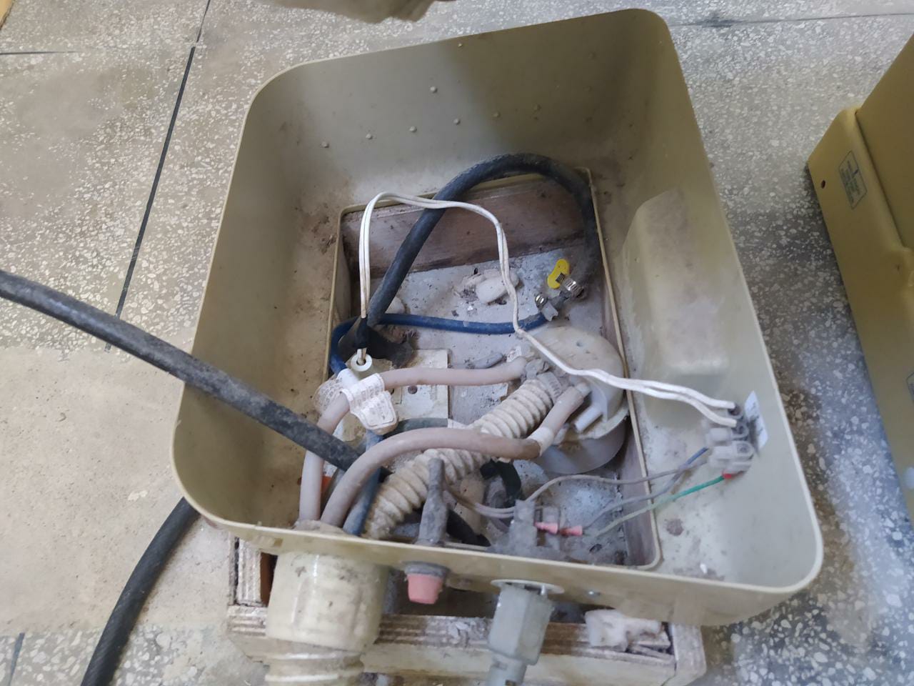 Infiltrações na parede e no forro; fio de eletricidade envolto sobre a estrutura metálica da cadeira odontológica, oferecendo risco de choque elétrico; ausência de água encanada nas torneiras; pias com extensa quantidade de ferrugem; presença de vazamento de ar em mangueira da caneta de alta-rotação; esterilização de instrumentais inadequada; e profissionais com pendências de inscrição junto ao CRO-PE.