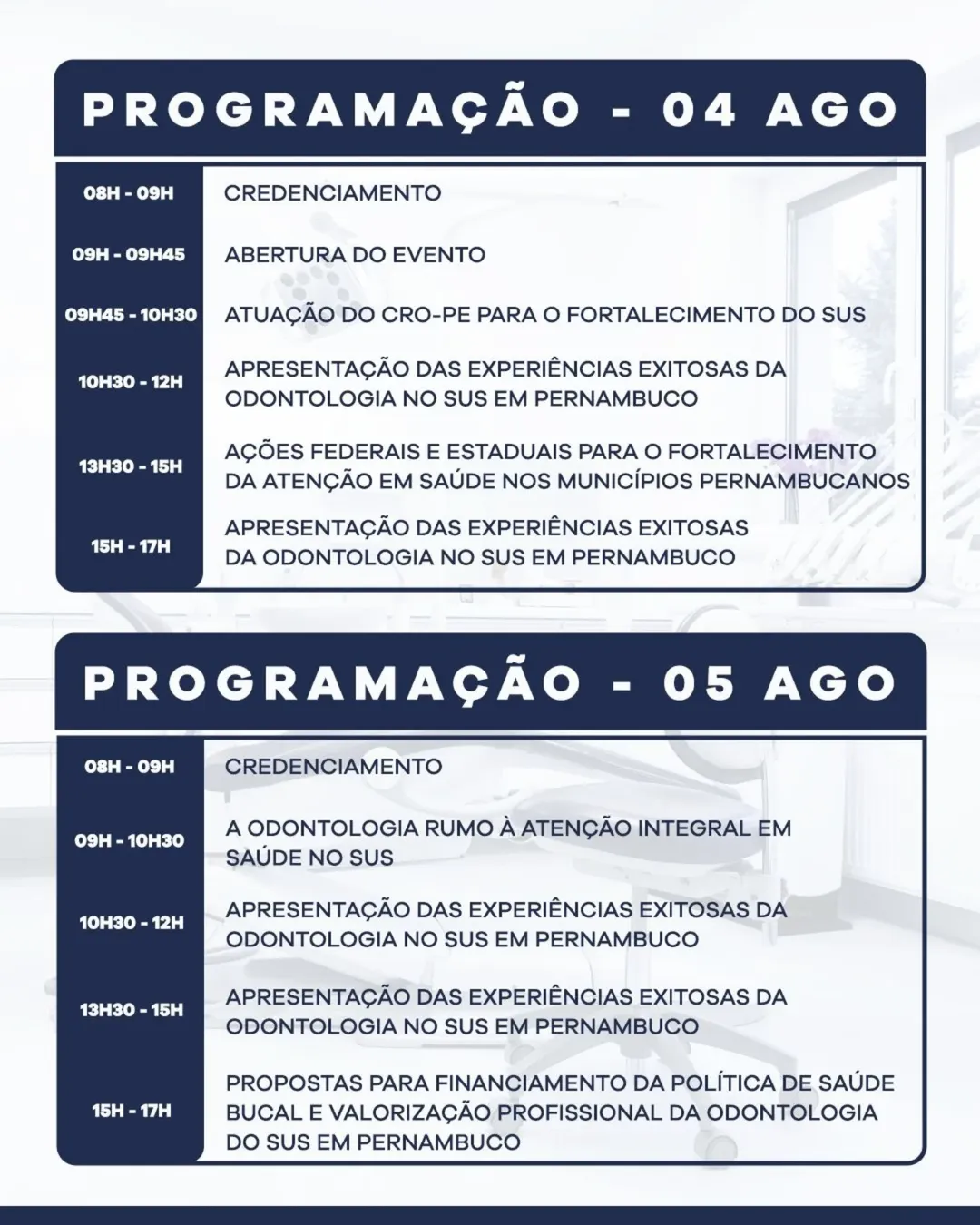 Convidamos toda a classe odontológica a participar desta oportunidade única de atualização, networking e reconhecimento do trabalho realizado na saúde pública de Pernambuco.